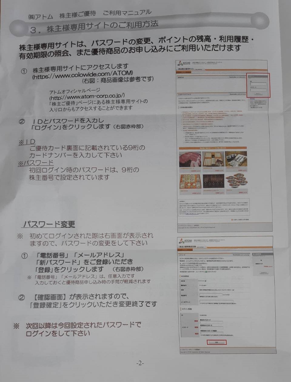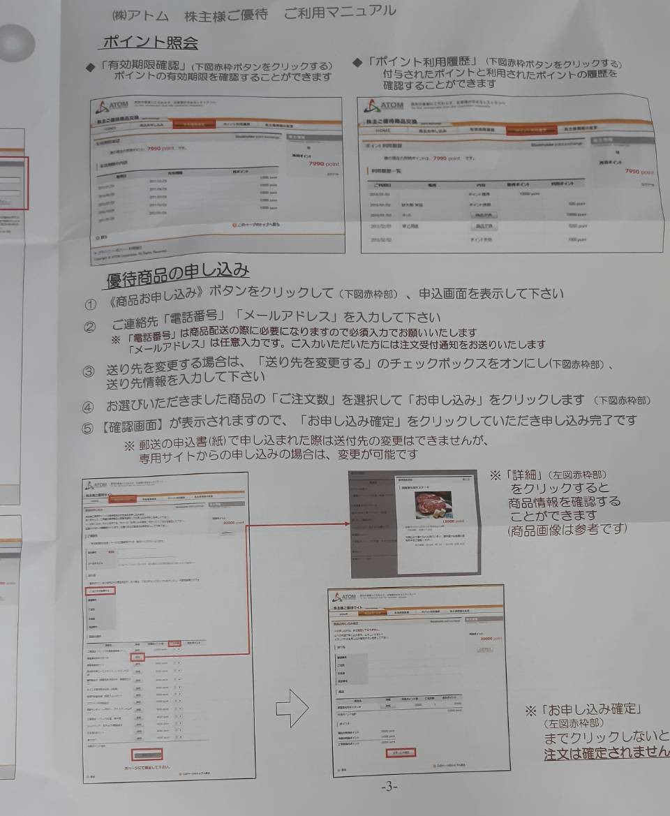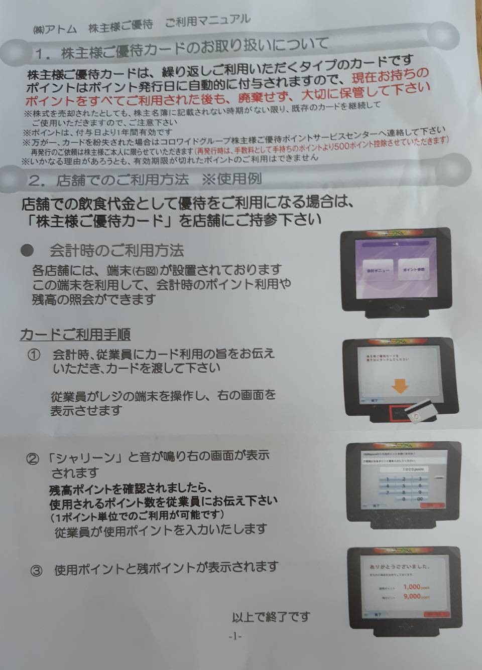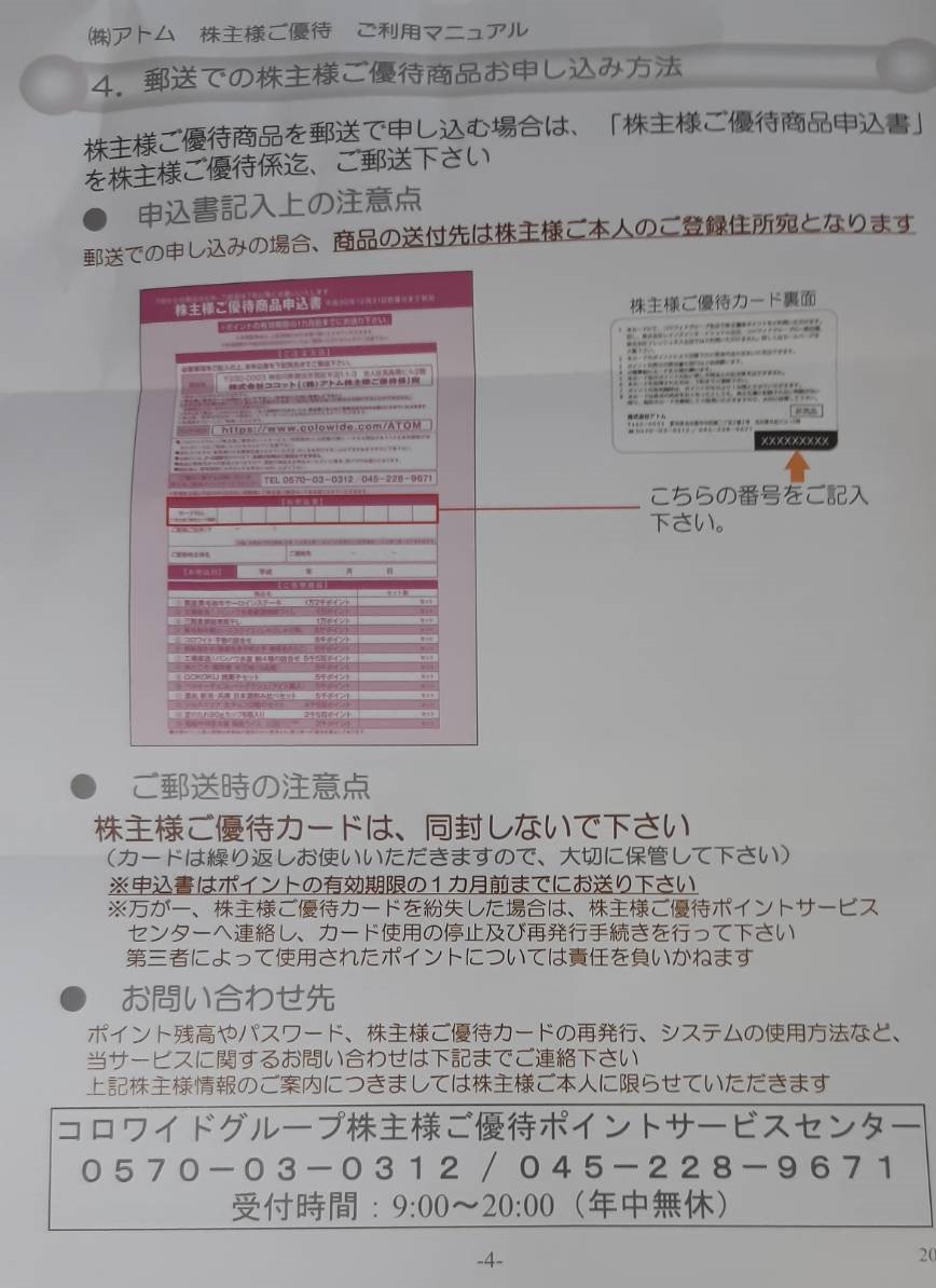 アトムの株主様ご優待カードの使い方