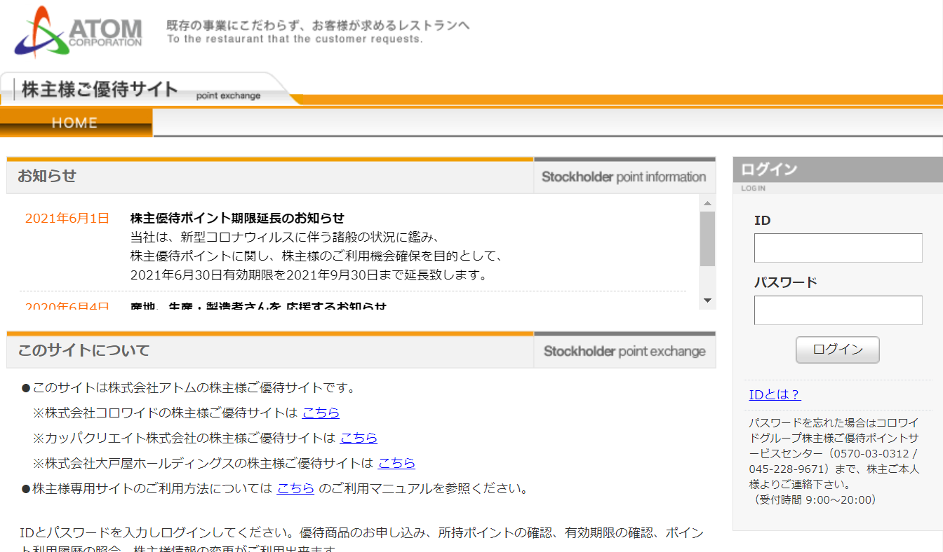 出典:アトム 株主様ご優待サイト(2021年6月現在)